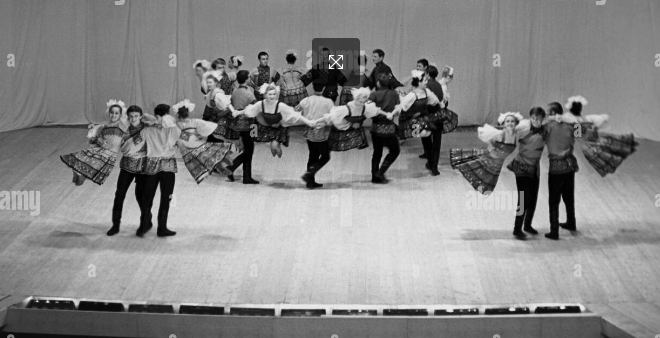 Yunost youth folk dance company performing a Ukrainian dance, 1970's stock photo.