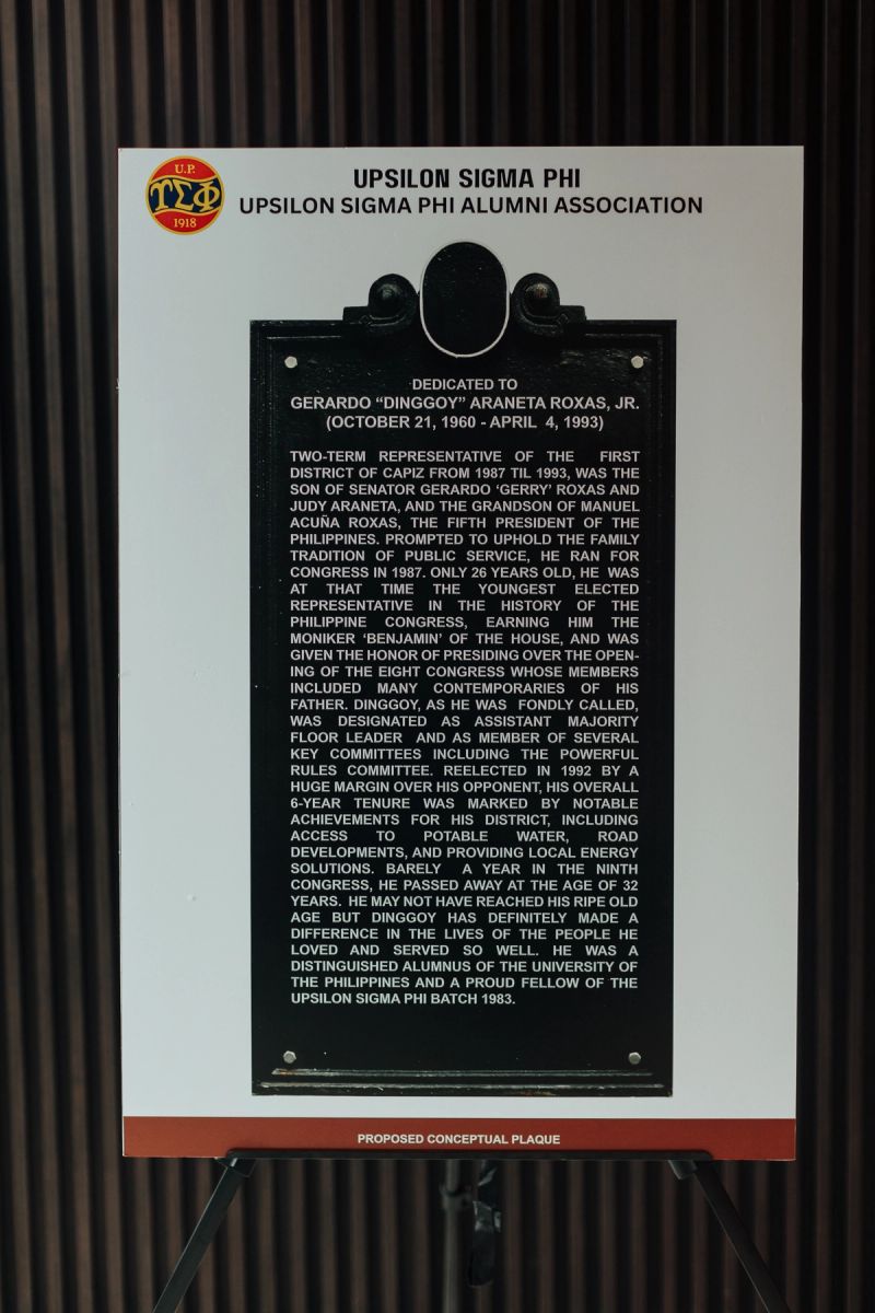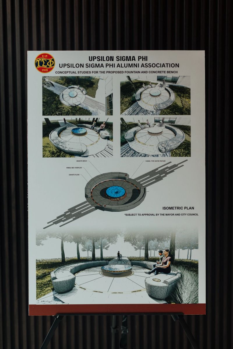 Mikko Yap ‘95, representing Upsilon Sigma Phi’s younger generation, formally presented the project, highlighting the symbolic importance of the fountain and the walkways that reflect the continuous journey of service. Artist Priscil-liano Vicaldo Jr. (UP Fine Arts graduate and trained under Napoleon Abueva and Jose Joya) followed with a presentation of the clay models of the busts, capturing the spirit and strength of both Gerry Sr. and Dinggoy Roxas.