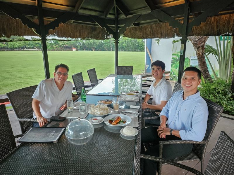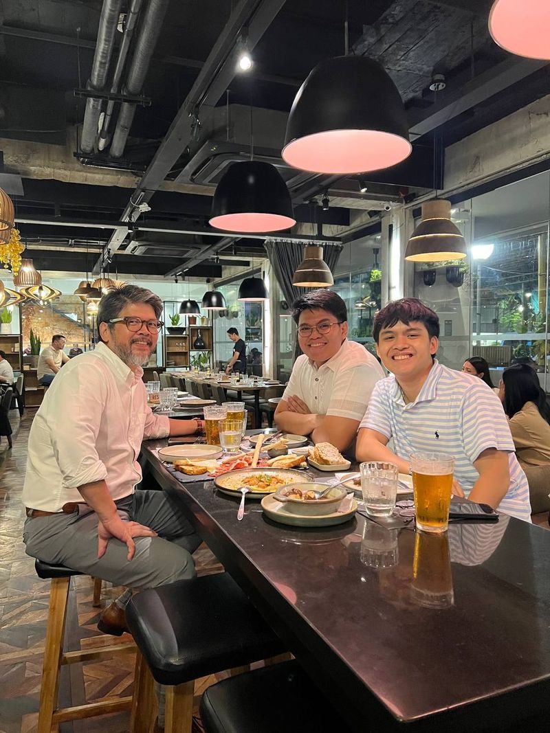 Roman Romulo ’86 breaks bread with Zov Ang 2024 and Kenneth Nicolas 2023, in a moment of intergenerational candor.