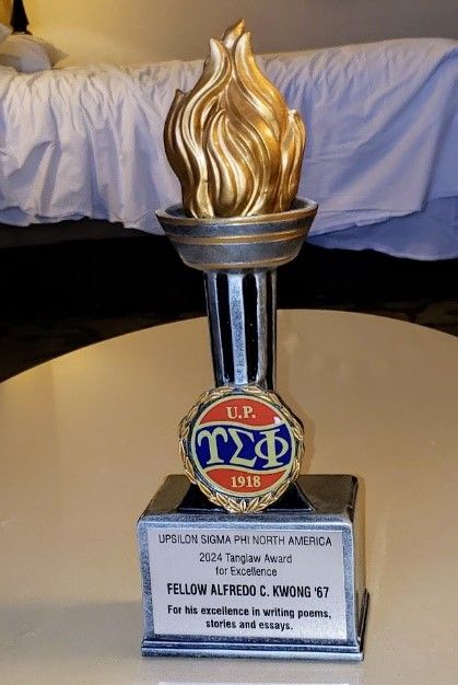 I had another compelling reason to be there. Perhaps this was what prompted my Commander to give me my walking papers to leave the home comfort, and to think allowing me to visit the city which some often compared to Sodom and Gomorrah (the slot machines there must have turned many into pillars of salt!). I was there to receive (I am still debating about why I got this, still thinking there are more deserving fellows) a Tanglaw Award for excellence. The plaque reads “Upsilon Sigma Phi North America – Tanglaw Award for Excellence – Fellow Alfredo C. Kwong ’67, for his excellence in writing poems, stories, and essays.”