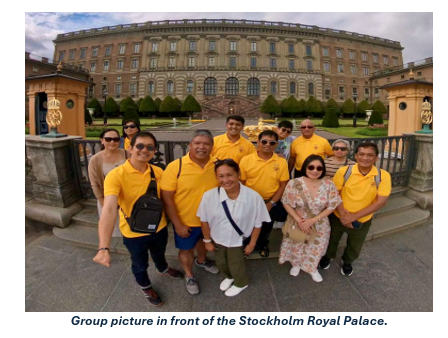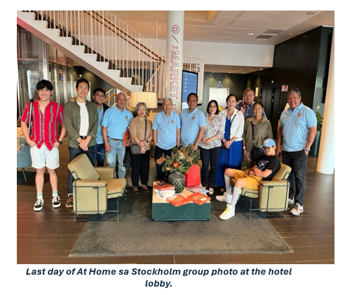 I arrived in the late afternoon of August 2nd at Arlanda Airport with the cool Stockholm breeze welcoming my first steps in this Nordic country. I immediately took the train to the Stockholm Central Station and headed directly to our chosen lodging, the Scandic Continental Hotel. The hotel was our accommodation for this highly anticipated fellowship and is known for its modern design but is surrounded by the traditional allure of old Scandinavia. Upon arrival at the hotel lobby, I was greeted by Narvin ’70 and his wife, Nita, as well as Mondeng ’88 and his wife, Gina, with warm smiles and handshakes. Next followed Jayson 2017, who also came from Manila and just finished his graduate studies in the Netherlands this June. We were then joined by retired U.S. navy officer RD ’78 and wife, Margot, Ambassador Jet ’81 with his wife, Gina, and their son, Rolly. Next came “EU President For Life” Eli ’57 with his daughters, Emma and Lucy. Suddenly the energy in the lobby skyrocketed as we filled the room with heartfelt greetings. I immediately felt at home with the brods, their presence washed away the fatigue of my 24-hour journey from Manila. Eli ’57, Narvin ’70, and Amb. Jet ‘81 also gave us delicious treats as welcoming “pasalubong”. To start the evening, Stockholm fellow and head organizer Kiks 2006 warmly welcomed the participants at the hotel lobby and guided the group through the city center for the welcome supper.