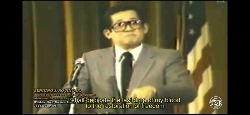 “Maituturing natin na isang bayani si Brod Ninoy Aquino sapagkat isinabuhay niya ang mga prinsipyo na pinaniniwalaan hindi lang dito sa aming kapatiran kun’di ang aming pamantasan...naipakita niya ang kaniyang dedikasyon para paglabananan ang tunay na kasarinlan nito sa bansa.” [Migs Pilapil, UP College of Law]