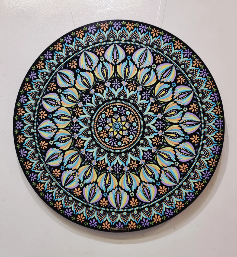 “I plan to experiment on ceramic tiles, acrylic, canvas, and sintra board,” she shares. “These may give the mandalas a new life beyond traditional wall art—perhaps even toward functional or architectural pieces.”