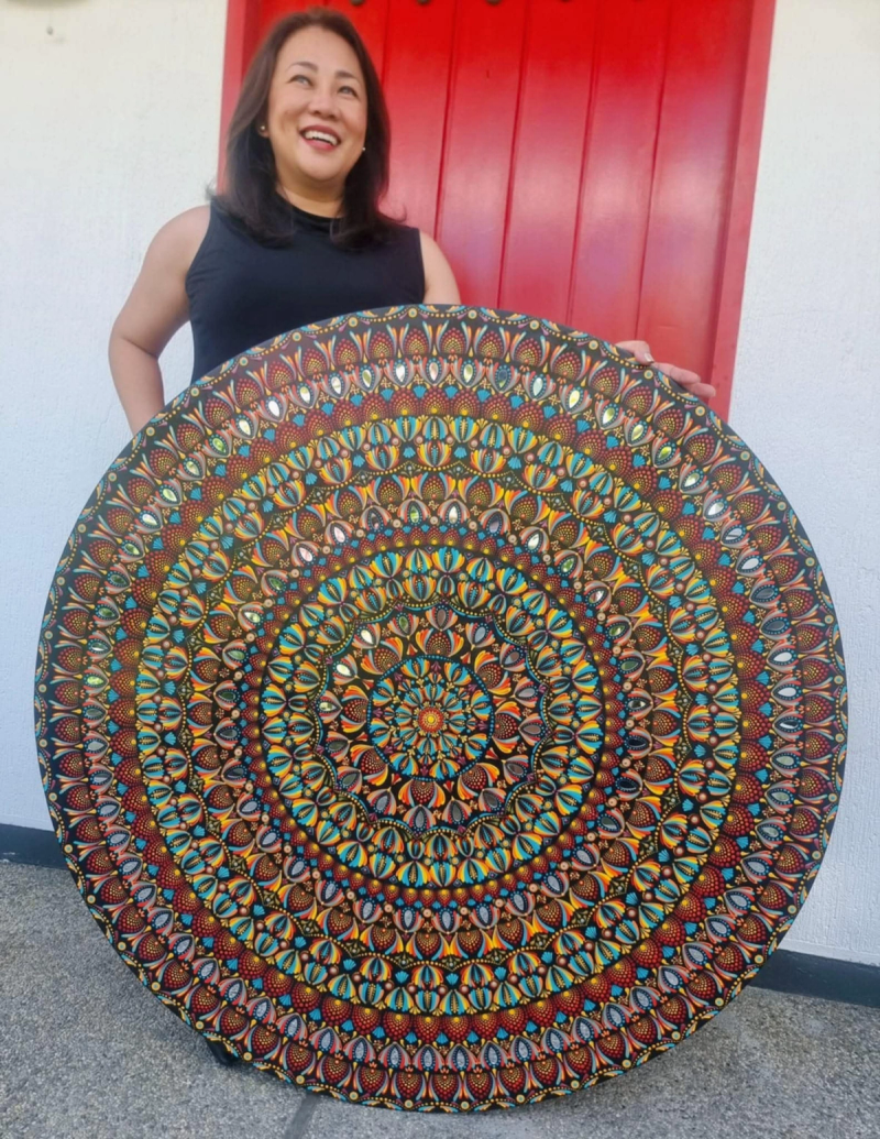 Mandalas have also helped her through grief. “When my mother passed away in January 2024, painting became one of my outlets. It helped me stay focused, to grieve, to heal, and to reminisce the many beautiful memories I have of Mama.”