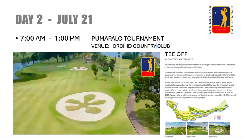 The first day of Pista sa Singapura starts with registration, cocktails, and a casino-themed welcome night. The second day opens up in different directions: Upsilonians na Pumapalo for the golfers, tours for those who want to see the city, then a Kambingan dinner and fellowship program later that evening. By the third day, the gathering narrows to the Grand Ball, where the reunion takes on its formal shape, including the USPNA board turnover and the handover for the next global reunion. Brothers would need to come in a barong for this event. Then, before everyone flies out, there is still time for one last morning over coffee at Kapihan sa Singapura.