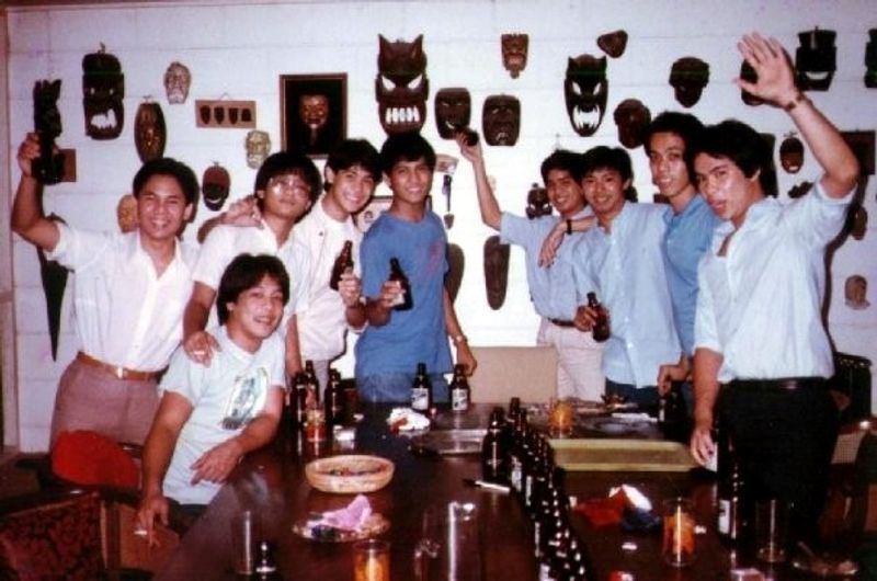 Dinggoy '83 (middle) at the Red & Blue Reunion held at the Araneta Center, August 11, 1984 with Upsilonians Vic Limson '83, Joel Viado '83, Ricky Rionda '83, Eric Livelo '81 and Mike Liamzon '83