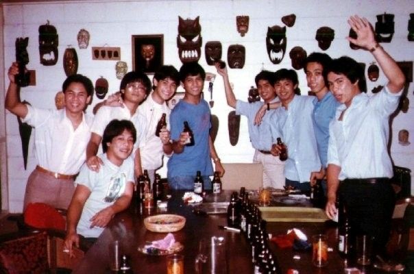 Dinggoy Roxas '83 with his batch-mates, mid-80's, in the picture are Dinggoy '83 (seated), standing left to right, Norman Hocson, Ricky Rionda, Anthony Pangilinan, Jesse Pacleb, Martin Salaveria, Eric Tamesis, Vic Limson and Mike Liamzon