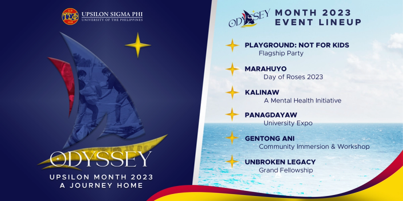 As the Upsilon Sigma Phi mounts these projects, we invite the UP community and the country at large to join us as we celebrate our 105th year. For inquiries and concerns, feel free to contact Rayne Parcon at 0977 801 1615. Together, we embark on this incredible Odyssey.