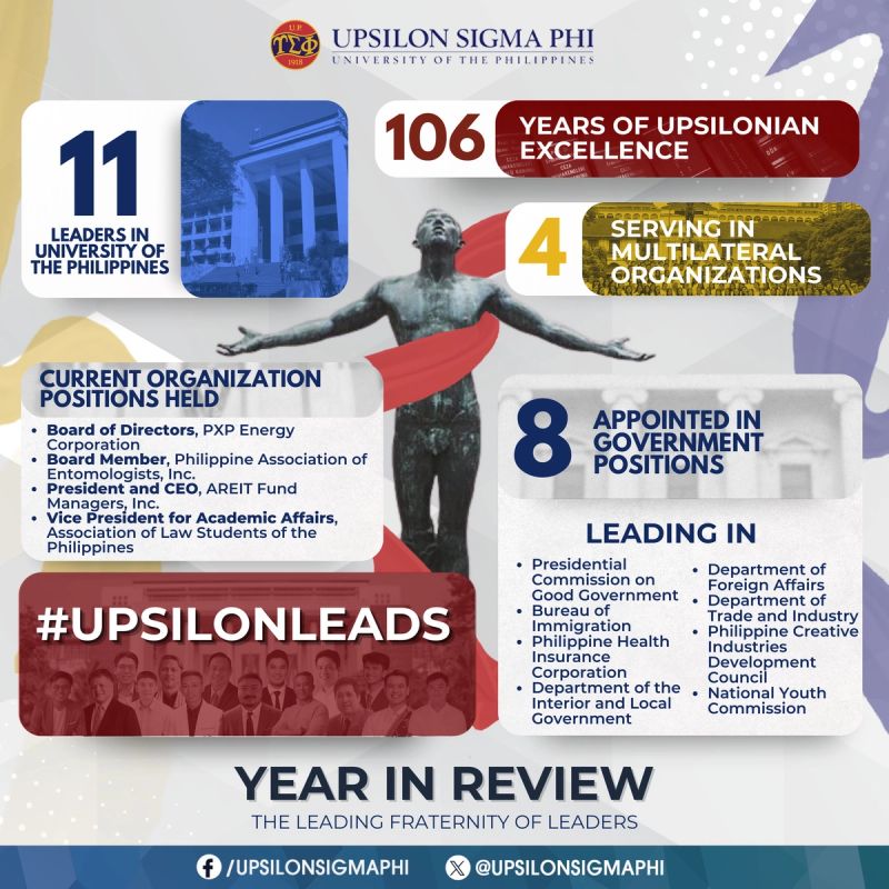 Fulfilling the fraternity's continuing commitment to serving our alma mater and the Republic of the Philippines, Fellows have taken on various leadership roles, all in service to our fellow countrymen.