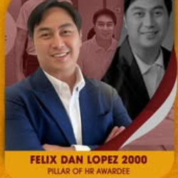 Fellow Felix Lopez 2000 was recognized as the Pillar of HR Awardee by the Philippines HR Group in 2024. This honor celebrates his exceptional contributions to human resource management, particularly his leadership in driving organizational development, enhancing employee engagement, and championing change management across major corporations in the Philippines. He is currently the Chief Human Resources Officer of Cebu Pacific Air and has held senior HR leadership roles at JG Summit Holdings and Universal Robina Corporation. A dedicated HR professional, Fellow Felix graduated cum laude from the University of the Philippines Diliman with a bachelor’s degree in political science in 2001.