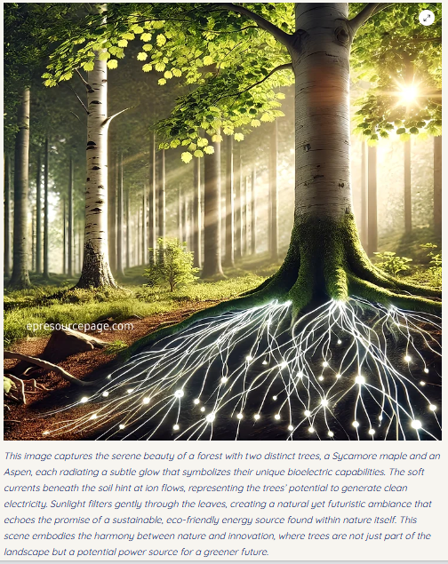These trees can release ions as water moves from their roots through their trunks. Through a series of chemical reactions, these ions generate a measurable electric charge. Researchers are now working on methods to collect this bioelectricity and turn it into usable power.