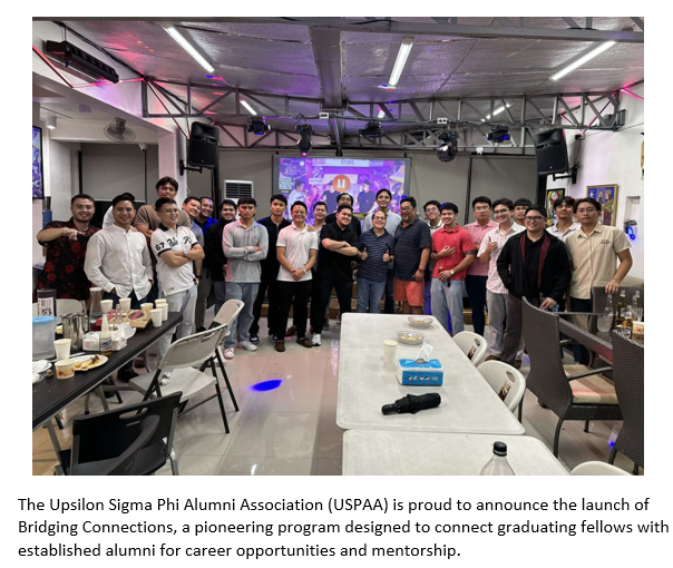 Officially launched on June 1, 2024, during a fellowship event in Marikina City sponsored by Theo Panga ’86, this initiative aims to foster a supportive network within the Upsilon Sigma Phi fraternity. The program facilitates connections between graduating fellows and alumni seeking career transitions, pairing them with experienced mentors in both government and the private sector.